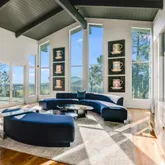 - Living Room Features: Cathedral/Vaulted, Deck Attached, Open Beam Ceiling, View