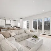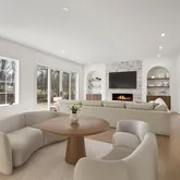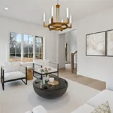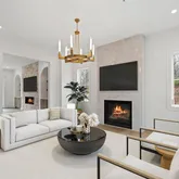 - RoomDescription 1: Formal LR with Wide Plank White Oak Flooring, Floor to Ceiling Stone Fireplace, Open Flow to Family Room