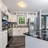 - Kitchen Features: Breakfast Bar, Cabinets White, Eat-in Kitchen, Kitchen Island, Pantry, Solid Surface Counters, View to Family Room