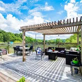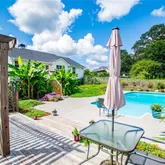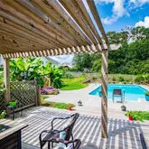 your backyard oasis. The sparkling saltwater pool has a computerized system that keeps it perfectly balanced, while the pergola offers a