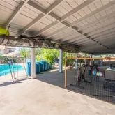 gigantic covered entertainer’s patio, sparkling fenced pool, and large storage shed for all of your