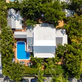 - Exterior Features: Built-in Grill, Storage, Sprinkler System, Privacy Wall/Fence, Outdoor Shower, Outdoor Kitchen, Lighting, Rain Gutters, Detached Guest Qtrs