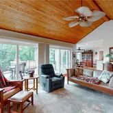 - Interior Features: Breakfast Bar, Ceiling Fans, Cathedral Ceilings, Separate Formal Living Room, Kitchen Family Room Combo, Living Dining Room, Sliding Glass Doors, Natural Woodwork, Window Treatments, Main Level Primary, Primary Suite