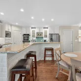 - Kitchen Features: Breakfast Bar, Cabinets White, Eat-in Kitchen, Kitchen Island, Pantry Walk-In, Stone Counters