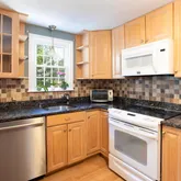 Large kitchen with door to beautiful enclosed porch overlooking PRIVATE back yard.