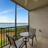 The primary bedroom is a private sanctuary, boasting spectacular views, a walk-in closet, and a spa-inspired ensuite with a glass-enclosed shower. Step out to the screened lanai to unwind while soaking in breathtaking sunsets and the tranquil beauty of the Manatee River. Additional conveniences include in-unit washer and dryer, a storage closet, and elevator access.