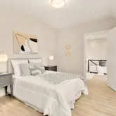 The second level features a versatile den, which opens to a private roof deck, perfect for unwinding or enjoying city views. The primary bedroom is a true retreat, with multiple skylights that flood the room with natural light, a spacious walk-in closet, and an en-suite bathroom.