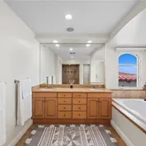 - Room Bathroom Features: Shower, Shower in Tub, Double Sinks in Primary Bath, Dual shower heads (or Multiple), Exhaust fan(s), Jetted Tub, Linen Closet/Storage, Main Floor Full Bath, Privacy toilet door, Separate tub and shower, Stone Counters, Tile Counters, Walk-in shower