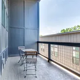 The third level delivers true open-concept living — with floor-to-ceiling windows, vaulted ceilings, and seamless flow from the kitchen to the living and dining spaces. The chef’s kitchen boasts quartz countertops, graphite cabinetry, stainless steel appliances, and a large island with seating for four. Step out onto the oversized patio, ideal for indoor/outdoor entertaining or enjoying an evening under the Atlanta skyline.