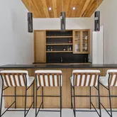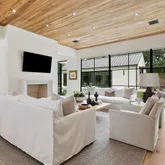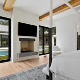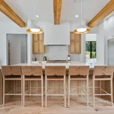 - Interior Features: Bar, Beamed Ceilings, Bookcases, Ceiling Fan(s), Double Vanity, Eat-in Kitchen, Entrance Foyer, Granite Counters, High Ceilings, High Speed Internet, His and Hers Closets, Kitchen Island, Low Flow Plumbing Fixtures, Natural Woodwork, Pantry, Primary Downstairs, Recessed Lighting, Smart Thermostat, Sound System, Special Wiring, Stone Counters, Storage, Walk-In Closet(s), Wired for Data, Wired for Sound, Breakfast Bar