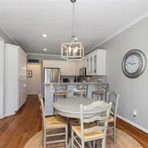 From the moment you enter, light moves easily through wide, welcoming rooms. Oversized windows frame leafy, tree-lined views, turning the outdoors into a daily calm. The modernized kitchen and bathrooms blend fresh finishes with timeless style, giving you the ease of move-in-ready living without sacrificing architectural charm. The main level is designed for connection—open yet defined—so conversations in the kitchen flow naturally into the living and dining areas, and out to the patio beyond.