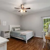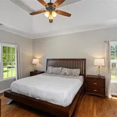 Out back, a large, fenced yard extends your living space outdoors. Evenings gather easily around the fire pit on the patio, under a canopy of stars and soft Georgia air—perfect for s’mores, story time, or a quiet glass of wine after a long day. There’s room for kids, pets, and weekend gardening, all wrapped in a sense of privacy and ease.