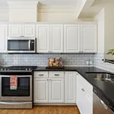 - Room Description: Custom white cabinets and back splash, stainless steel appliances, large panty and built in desk for added convenience.