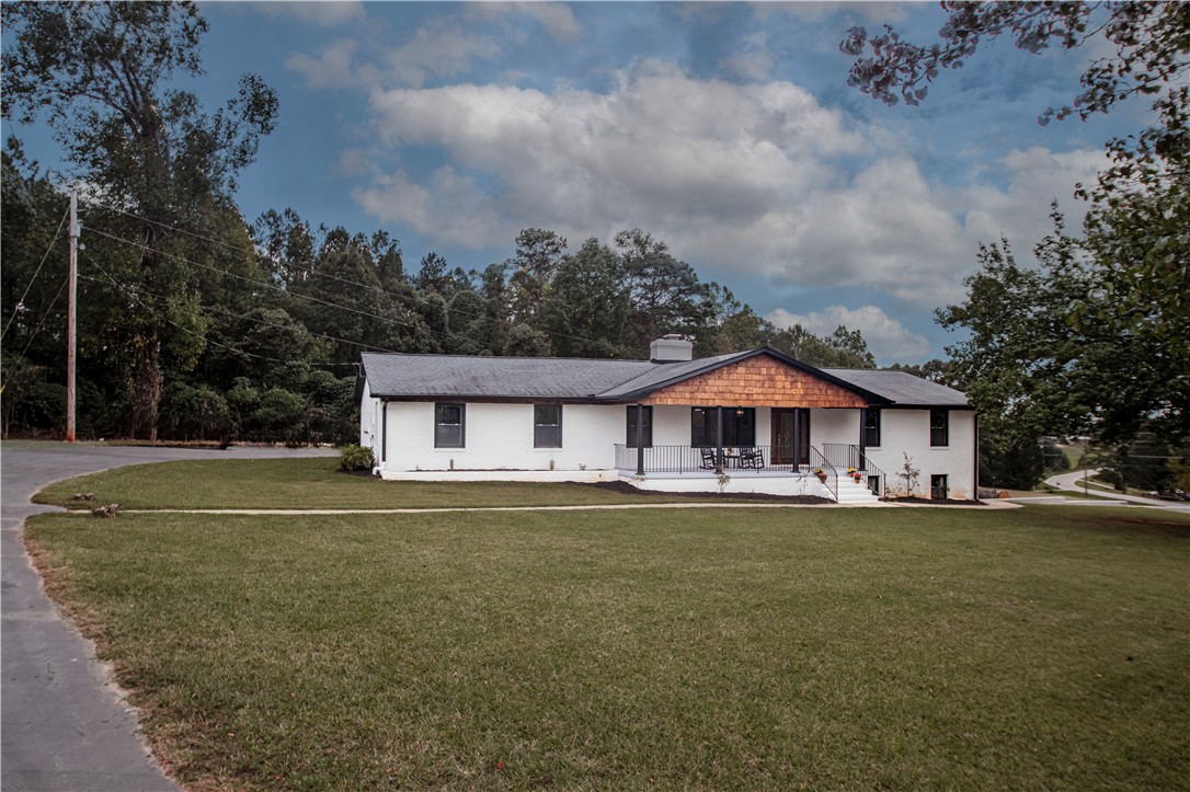 - Add endum: This beautifully remodeled brick ranch could be so many things for so many situations! It's 4 bedrooms, 3 1/2 baths, office, and 3 large living areas fit almost any family's needs. Upstairs, hardwoods flow through most of the home, including 3 spacious bedrooms, a den, and a living room. The open kitchen overlooks a woodburning fireplace in the den, while french doors bring nature inside. The large backyard is surrounded on two sides by trees that create privacy. On one end of the home, an office and a laundry/mud room each open to the attached garage, and surround a guest bath. At the front, an expansive living and dining area give room to host as many people as you could want in your home. Oversized new windows open the space to a covered, 9x27 front porch with mountain views. In the basement with access from inside the home or the exterior, you'll find another new primary suite with huge walk-in tile shower and bonus room with kitchenette. This space is great as the main primary, an in-law suite, an adult child or caretaker's apartment, or even a short term rental within your home. Located outside city limits, only very limited county ordinances regulate what you do with your property. The address qualifies for USDA 100% financing. Y'all come take a look and fall in love this property, just 1/2 hour to Anderson or Greenville for work, and 1/2 hour in other directions for lakes and mountain parks!