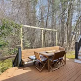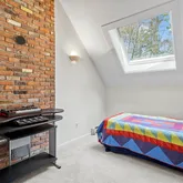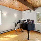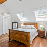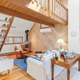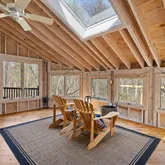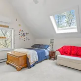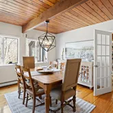 Step into this beautifully designed contemporary home featuring rich wide plank hardwood floors that flow seemingly through the living space. The warmth of natural wood ceilings adds character and charm, perfectly complementing the home's sleek modern lines. Enjoy the cozy ambiance of not one, but 2 fireplaces. Recent updates include 9 new Anderson windows and 12 solar powered Velux skylights with integrated blinds that flood the home with natural light. Equipped for comfort and efficiency, this...Step into this beautifully designed contemporary home featuring rich wide plank hardwood floors that flow seemingly through the living space. The warmth of natural wood ceilings adds character and charm, perfectly complementing the home's sleek modern lines. Enjoy the cozy ambiance of not one, but 2 fireplaces. Recent updates include 9 new Anderson windows and 12 solar powered Velux skylights with integrated blinds that flood the home with natural light. Equipped for comfort and efficiency, this home includes brand new mini split AC units and high efficiency heat pump system for heating and cooling installed in 2025. The spacious layout includes 3 bedrooms, a dedicated office and a partially finished basement. A perfect blend of style and comfort, this home is ideal for those who appreciate modern design paired with timeless, organic materials. Enjoy serene views from the sunporch, showcasing a professionally landscaped yard, offering year-round beauty.