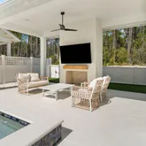 - Exterior: Balcony, Deck Covered, Fenced Back Yard, Fireplace2, Pool - Heated, Pool - In-Ground, Rain Gutter, Shower, Sprinkler System, Summer Kitchen