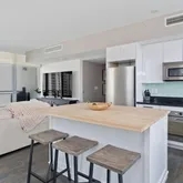 The unit is in a modern, renovated building called The Mint The Mint offers a pool overlooking the river, a great fitness center, and an excellent location.