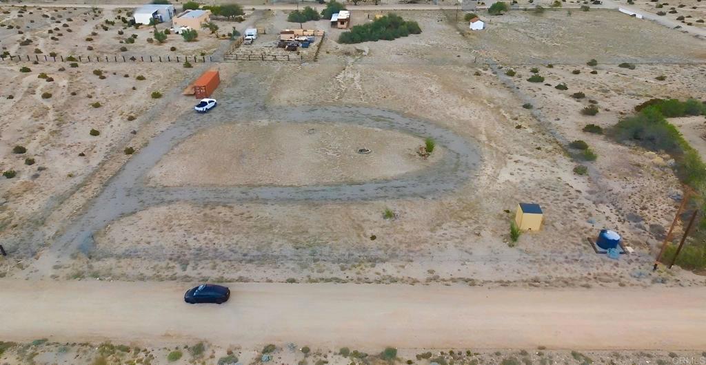- Possible Use Comments: Here is a great opportunity to build your dream dessert getaway, this is a perfectly flat lot where you can build as you wish ( with the right permits ), if you are a dirt bike enthusiast or have a trailer, motorhome or just dessert toys and would like to have your very own place where you can camp as long as you want, and or keep your toys there, enjoy the beautiful starry nights with little or no light pollution, this is perfect, lot is entirely fenced, it has a 1300 gallon water tank, a functional private bathroom, and a large container that is negotiable, there are no utilities other than electricity on the street, don't miss this great opportunity, come and check it out.