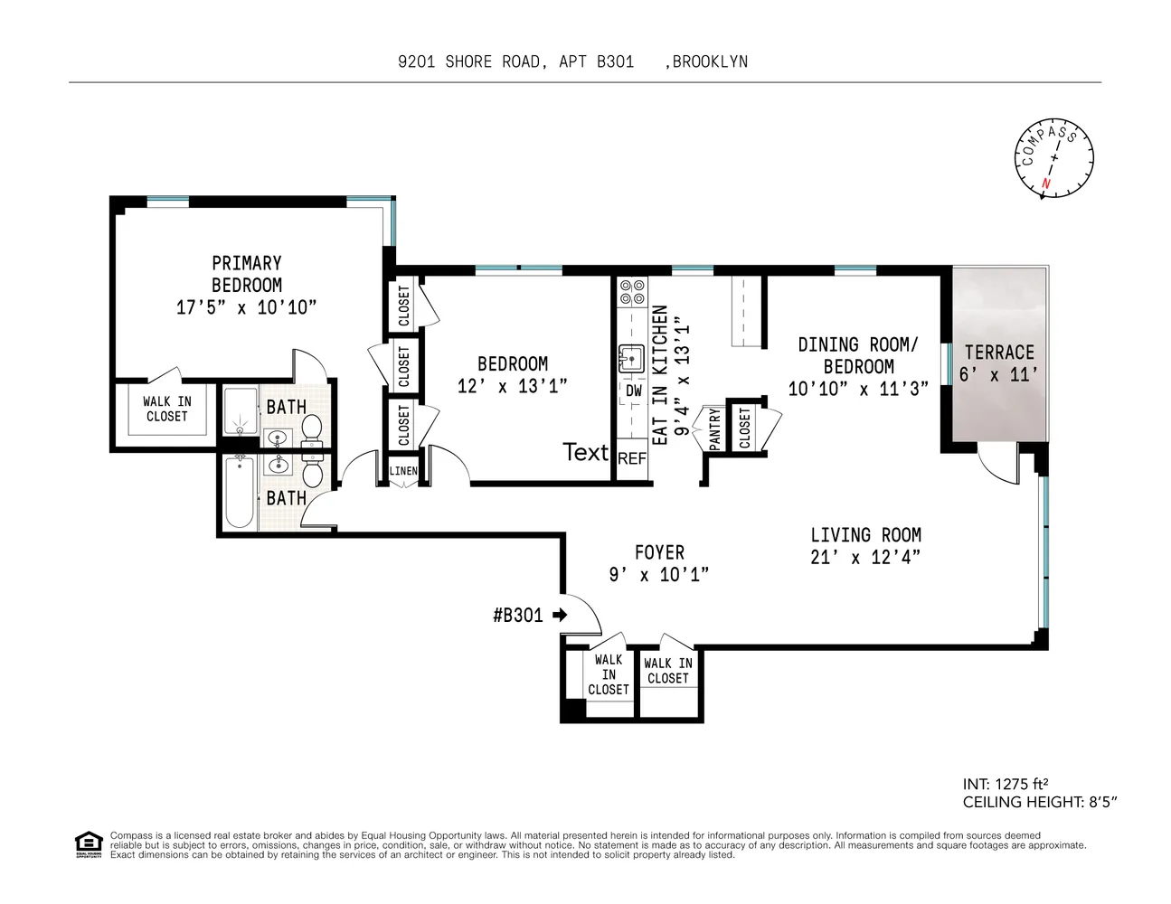 9201 shore road #B301 is 1275 Square foot 2 bed, 2 bath with a FLEX 3rd bedroom