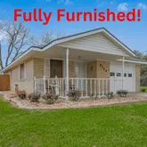 2 bedroom (1 queen bed, 1 full), with flex room, 1 bath, office nook, one car garage, enclosed sun room. Step-in shower, granite counter tops, eat-in kitchen, ceiling fans, central air/heat, laundry room, fenced back yard, lots of storage. Pets: maybe 1 small cat or dog. Fully furnished (similar to an Air BNB) to include cookware, dishes, basic linens, all appliances (incl upright freezer), W/D, 2 TVs, no dishwasher. Just bring your...Available for short or long term rental, and includes lawn care.
