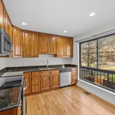 The kitchen has been updated with 42 inch cabinetry, granite countertops, stainless steel appliances, and a large window that brings in abundant natural light.