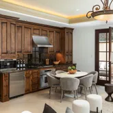 - Kitchen: Dishwasher, Exhaust Fan, Garbage Disposal, Hood Over Range, Hookups - Gas, Island with Sink, Oven Range - Gas, Refrigerator, Trash Compactor, Wine Refrigerator