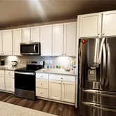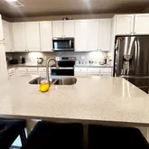 - Room Description: Open kitchen with large bar sitting island