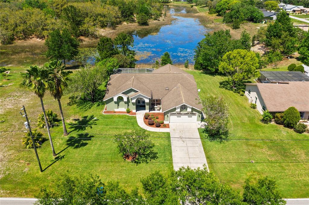 Custom built 3-2-2 POOL home with a gorgeous lake view at the back. Set on a spacious 0.36 acre lot, with additional open patio area and fire pit. No HOA restrictions or fees here, plenty of room for boats, RV's or other toys. Inside you will find high ceilings, trimmed with crown molding and custom tinted windows for energy efficiency. Large formal Dining Room with room for that oversized dining table, open plan Kitchen / Living Room with diamond pattern ceramic tiles, accent plant shelves, new...Custom built 3-2-2 POOL home with a gorgeous lake view at the back. Set on a spacious 0.36 acre lot, with additional open patio area and fire pit. No HOA restrictions or fees here, plenty of room for boats, RV's or other toys. Inside you will find high ceilings, trimmed with crown molding and custom tinted windows for energy efficiency. Large formal Dining Room with room for that oversized dining table, open plan Kitchen / Living Room with diamond pattern ceramic tiles, accent plant shelves, new canned lighting in ceilings and a desk area. The kitchen has a tray ceiling with concealed lighting, plenty of cabinets, granite counters galore and a raised breakfast bar. Numerous glass sliders look out onto the pool area. Den area makes a nice home office or easy 4th bedroom (no closet). Spacious Master suite has a stunning master bathroom with garden tub, separate shower and double vanity. Inside Laundry Room with utility sink and granite counter. The saltwater pool is heated and surrounded by a paved deck with plenty of room for outdoor dining. Septic system has a new leachfield, Roof 2012, A/C 2018, Seller including all wall mounted TV's plus a camera security system and alarm. Gorgeous setting with the waterview. Just waiting for a new owner to make it their own.