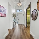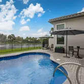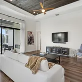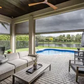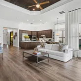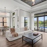 Impeccably maintained and thoughtfully upgraded, this residence offers a refined blend of luxury finishes, modern systems, and effortless indoor-outdoor living. The open-concept interior is highlighted by newly installed high-end laminate flooring throughout, while the concrete slab has been professionally treated and sealed with a moisture barrier, ensuring long-term durability and peace of mind. Tray ceilings accented with dark stained wood add architectural depth.