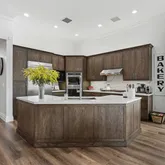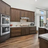 The kitchen and utility spaces feature premium Ultracraft cabinetry, extended throughout the kitchen, bathrooms, master closets, and laundry room. Quartz countertops enhance the kitchen, master bath, and laundry room, complemented by granite countertops in the guest bathrooms.