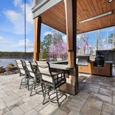 - Exterior Features: Barbecue, Basketball Court, Boat Slip, Built-in Barbecue, Dock, Fire Pit, Gas Grill, Lighting, Outdoor Grill, Outdoor Kitchen, Outdoor Shower, Private Yard, Rain Gutters, Smart Camera(s)/Recording, Smart Irrigation, Smart Light(s)