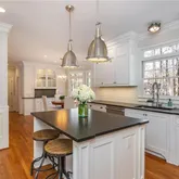 - Kitchen Features: Breakfast Bar, Breakfast Room, Cabinets White, Eat-in Kitchen, Kitchen Island, Stone Counters