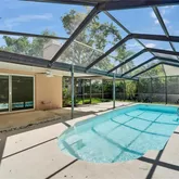 - Pool Features: Auto Cleaner, Fiberglass, Heated, In Ground, Lighting, Screen Enclosure, Solar Cover