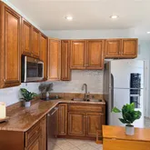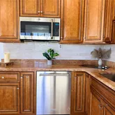 a standout feature, offering granite countertops, a full-size refrigerator, full-size dishwasher,
