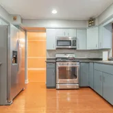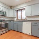 - Room Description: Oak HWF, Recessed lighting, door to backyard/pool, SS appliances, new soft close grey cabinets, formica countertops, Double SS sink, tile back splash
