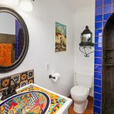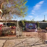 This exquisite Spanish-style residence seamlessly blends character, charm, and modern convenience, having been showcased in design magazines for its unique architectural allure. Spanning 1,979 square feet, this three-bedroom, two-bathroom home is adorned with elegant crown molding, dual-pane windows, and rich Italian tile flooring. A permitted 2017 addition boasts soaring 16-foot vaulted ceilings, floor-to-ceiling picture windows that frame the backyard and sunsetting skies, recessed lighting and...This exquisite Spanish-style residence seamlessly blends character, charm, and modern convenience, having been showcased in design magazines for its unique architectural allure. Spanning 1,979 square feet, this three-bedroom, two-bathroom home is adorned with elegant crown molding, dual-pane windows, and rich Italian tile flooring. A permitted 2017 addition boasts soaring 16-foot vaulted ceilings, floor-to-ceiling picture windows that frame the backyard and sunsetting skies, recessed lighting and breathtaking panoramic mountain views. The primary suite is a tranquil retreat, featuring a generous walk-in closet, a luxurious jetted tub, and a custom tile surround shower. The gourmet kitchen is equally captivating, designed with vaulted ceilings, artisanal concrete countertops, a gas stove, and stunning arched entryways that enhance its old-world charm. Modern amenities include Nest smart home technology, a tankless water heater and central air and heat, ensuring both comfort and efficiency. Outdoors, the enchantment continues with a meticulously designed entertaining space. A grand wrought-iron entrance opens to a private sanctuary featuring a custom paver patio, a striking outdoor fireplace, and a fully equipped kitchenette with a built-in grill, mini refrigerator, and an authentic wood-fired pizza oven. The separate, insulated studio—perfect for an office, art space, or yoga retreat—exudes serenity with stained glass accents and abundant natural light.
