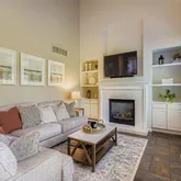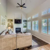 - Room Description: Vaulted great room with gas fireplace, custom built-ins, oversized windows, and beautiful tile flooring.