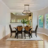 - Room Description: Dining room features a bay window and classic wainscoting.