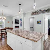 - Interior Features: Ceiling Fan(s), Crown Molding, High Ceilings, Kitchen Island, Primary Downstairs, Recessed Lighting