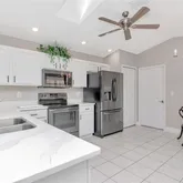 - Interior Features: Ceiling Fan(s), Eating Space In Kitchen, Open Floorplan, Solid Surface Counters, Split Bedroom, Thermostat, Walk-In Closet(s)