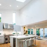 - Kitchen: Built-in BBQ Grill, Cooktop - Gas, Countertop - Marble, Dishwasher, Exhaust Fan, Freezer, Hood Over Range, Ice Maker, Island with Sink, Microwave, Oven - Gas, Pantry, Refrigerator, Skylight, Wine Refrigerator