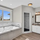 bath has a whirlpool tub, double vanity, walk in shower and closet! The lower level