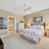 The expansive main bedroom suite is a retreat complete with two walk-in closets, twin vanities, luxurious 5-piece bathroom. Guest bedrooms are split for owner privacy with 2nd & 3rd sharing bathroom 2 & direct access to laundry room and kitchen. For owner privacy guest bedrooms are split with 2nd bathroom, multiple closet storage plus direct access to kitchen and laundry room. Bedroom 3 is versatile with double doors, can be dining room or study. Two great features include dedicated storage and OVER-SIZED UNDER-BUILDING PRIVATE GARAGE 10! Designed with CONVENIENCE and your PEACE OF MIND - SAFETY features sprinklers in rooms and closets plus smoke detectors. Layout shields living room & main bedroom suite from direct afternoon sun, minimizing cooling costs while providing year-round comfort and enjoyment of the screened lanai.