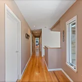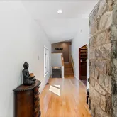 Upstairs, a long hallway leads to the spacious primary bedroom, featuring built-in closets and a bathroom with double sinks and a shower-bath combo. A third set of sliding doors seamlessly connects the primary bedroom to the outdoors. Two additional bedrooms are equipped with their own en-suite bathrooms, offering comfort and privacy for family or guests. The fourth room boasts high ceilings and abundant natural light, perfect for a bedroom or in-home office. This home is packed with fabulous closet space throughout, especially through the upstairs hallway.