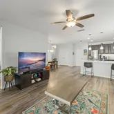 - Interior Features: Ceiling Fan(s), Eating Space In Kitchen, High Ceilings, Kitchen/Family Room Combo, Living Room/Dining Room Combo, Stone Counters, Thermostat, Walk-In Closet(s)