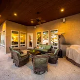 - Exterior Features: Patio Slab, Covered Patio, Wrought Iron Fence, Storage Building/Shed, Mature Trees, Aircraft Hangar