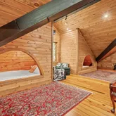 - Interior: Beamed Ceilings, High Ceilings, Master On Main Level, Separate Shower, Soaking Tub, Walk-In Closet(s), Wet Bar