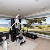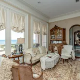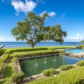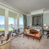 20' stacked stone wall with cascading waterfall in the private courtyard. Glass-walled gym approx (15x15) with panoramic water views. Chlorine pool, koi ponds, and new irrigation well. Outdoor lighting across the entire property creates an enchanting evening atmosphere. Three double garage doors with ample storage and access. Nearly 4 acres of gated Gulf-front land with manicured grounds and ponds. Pennsylvania Blue Stone pathways and custom outdoor living spaces perfect for entertaining. This estate is more than a residence—it is a statement of timeless luxury and unmatched craftsmanship, offering privacy, elegance, and the ultimate Gulf Coast lifestyle.