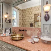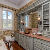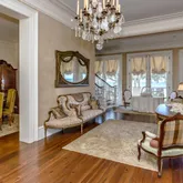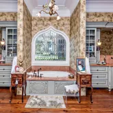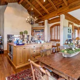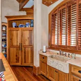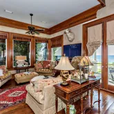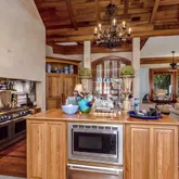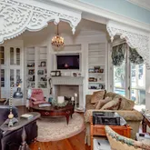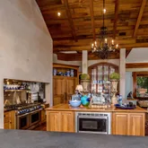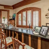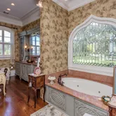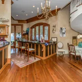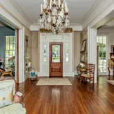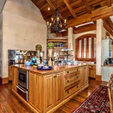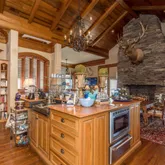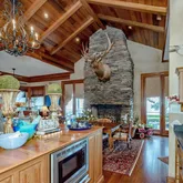 12' ceilings downstairs, 10' upstairs, with 10-12'' baseboards and 8-piece crown mouldings. Heart of Pine floors from New Orleans and antique chandeliers imported from England. Custom Sinker Cypress cabinetry, doors, and window casings throughout, including 9' Cypress doors downstairs and 7' upstairs. Corbels imported from Canada, Pennsylvania Blue Stone, and stone fireplaces (including a replica of the Biltmore fireplace imported from Asheville and a custom piece from Atlanta). Interior woodwork imported from New Orleans and St. Louis. Automatic/electric shades, wood shutters, and custom built-ins enhance every space. Chef's kitchen with commercial-grade gas stove, built-in refrigerator/freezer, vaulted Cypress ceiling, and expansive custom cabinetry. Multiple stone fireplaces, including a dramatic stacked stone centerpiece. New large theatre room (1,100 sq ft) above the garage for entertaining. Five-zone air conditioning system, all units just a few years old.