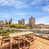 98 Front is one of DUMBO’s premier developments. The lobby features a 24-hour doorman, and a courteous staff, including a live-in resident manager, ensuring the building and its residences are well-maintained. The extensive and exceptional amenity package that this building offer is a modern fitness center, indoor saltwater pool and hot tub, steam room, children’s playroom, bicycle storage, and a co-working area on the garden level. An elevator takes you to the 7,000 sq. ft. roof deck with three outdoor kitchens, grills, screening area, an open-air fitness zone, and panorimatic views of New York City and Brooklyn. At the rear of the building is a private, residents-only valet parking garage with electric vehicle chargers.